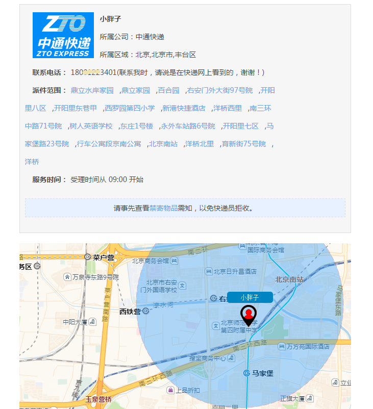 第三步:點(diǎn)擊“找快遞員”,會(huì)打開快遞網(wǎng)點(diǎn)的電話聯(lián)系頁(yè)面(如下圖所示),撥打電話頁(yè)面上顯示的電話,告知“我是在快遞網(wǎng)網(wǎng)站站上看到您的電話的,我要寄一個(gè)快件,請(qǐng)上門取件”及您的具體地址,快遞員即會(huì)上門取件。