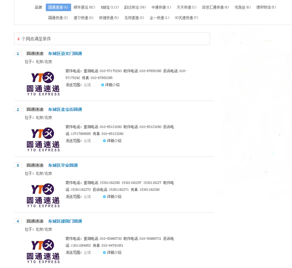 第三步:進(jìn)入網(wǎng)點(diǎn)查詢,根據(jù)您喜好的快遞品牌選擇快遞網(wǎng)點(diǎn)。 直接電話聯(lián)系快遞網(wǎng)點(diǎn)進(jìn)行溝通咨詢,如若收件時(shí)遇到問題件,也可在此找到投訴電話。