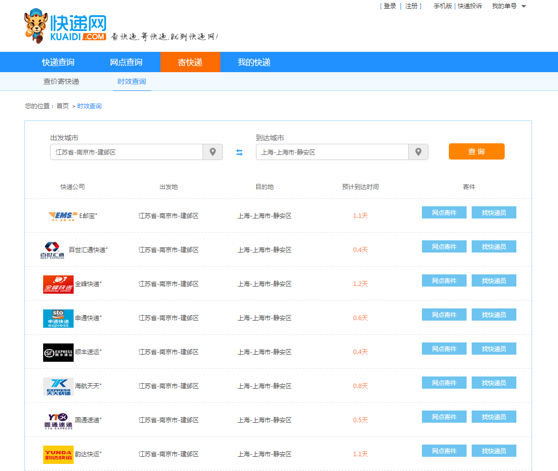 第二步:在了解時(shí)效之后,寄快遞有網(wǎng)點(diǎn)寄件和找快遞員兩種途徑,請(qǐng)分別參照方法二和方法一。