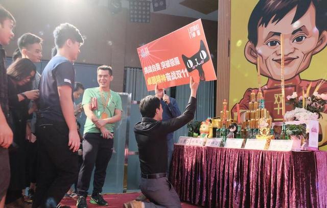 11月10日晚,當(dāng)網(wǎng)友好奇觀看橫空出世的“雙11”晚會時,在廣州市番禺區(qū)電子商業(yè)園區(qū),電商們正在舉辦雙十一加油大會,擺供品、請按摩師為員工們按摩……然后,延續(xù)去年的傳統(tǒng)——排隊拜馬云。與時俱進的是,今年畫像上還增加了一個人,剛剛迎娶奶茶妹妹的京東創(chuàng)始人劉強東。