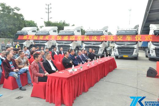 10月30日上午,天天快遞四車(chē)隊(duì)沃爾沃交車(chē)儀式在天天快遞杭州集散舉行,天天快遞總部運(yùn)管部調(diào)度中心相關(guān)負(fù)責(zé)人、杭州集散中心經(jīng)理鄭建宏,天天快遞四車(chē)隊(duì)鑫淼物流總經(jīng)理李德平,沃爾沃中國(guó)華東區(qū)總經(jīng)理沈力強(qiáng),寧波甬沃汽車(chē)有限公司總經(jīng)理姚程宏,浙江萬(wàn)盾資產(chǎn)管理有限公司總經(jīng)理助理徐婧,山東駿通專用車(chē)有限公司總經(jīng)理張建強(qiáng),浙江宗海物聯(lián)網(wǎng)發(fā)展有限公司總經(jīng)理張文進(jìn),浙江高速交警總隊(duì)徐洋,下沙派出所所長(zhǎng)周春華參加本次儀式。