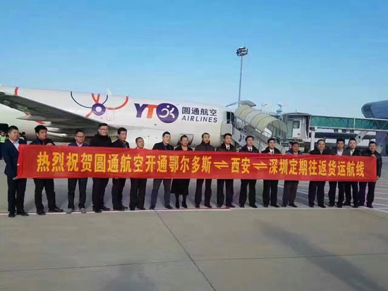 2016年11月1日,圓通速遞新增鄂爾多斯-西安-深圳往返全貨機(jī)航線。改航線凌晨執(zhí)行(00:30起飛)西安-深圳-西安-鄂爾多斯(08:30落地)。