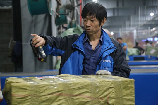 2014年8月,30歲的邵金光將5歲大的女兒和8個(gè)月大的兒子托付給家人,成為了中通河南漯河轉(zhuǎn)運(yùn)中心到件掃描組的一員。由于工作忙碌,她不得不給小兒子斷了奶;冬季嚴(yán)寒,她的雙手長出了凍瘡,每天下班用辣椒水涂抹消腫后第二天照常投入工作。一年多時(shí)間以來,除了過年,邵金光從未休息過,她也因此成為了同事們眼中的“模范標(biāo)兵”。